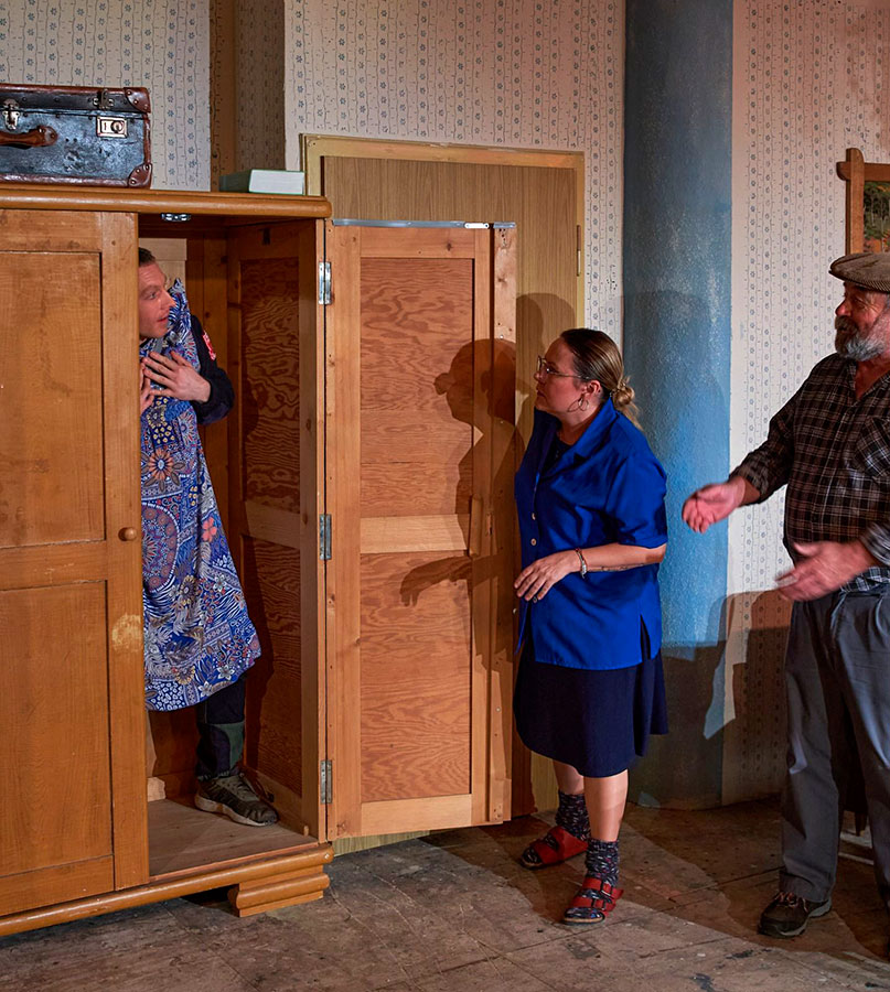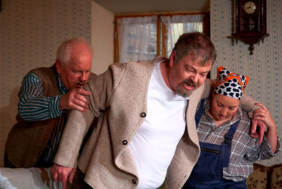 Als dann auch noch Opa Richard im Schrank steht, drehen die beiden fast vollkommen durch und lassen sich gerne von ihren Frauen Karin und Birgit abwechselnd mit Kamillentee und kalten Umschlägen kurieren.