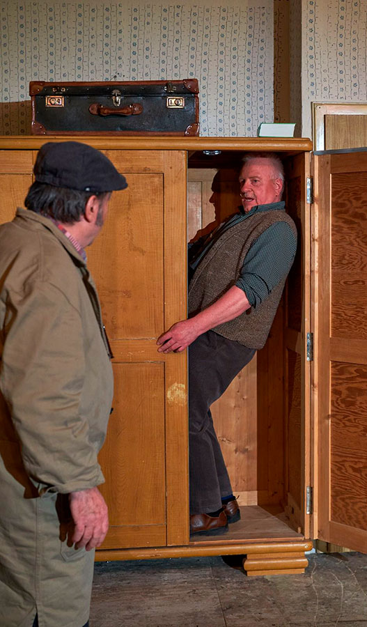 Als dann auch noch Opa Richard im Schrank steht, drehen die beiden fast vollkommen durch und lassen sich gerne von ihren Frauen Karin und Birgit abwechselnd mit Kamillentee und kalten Umschlägen kurieren.